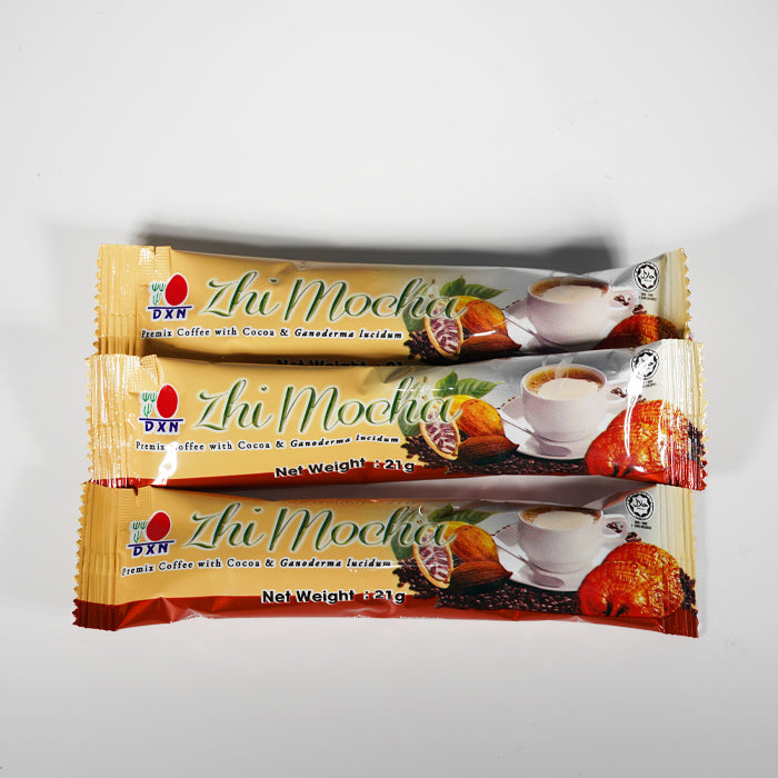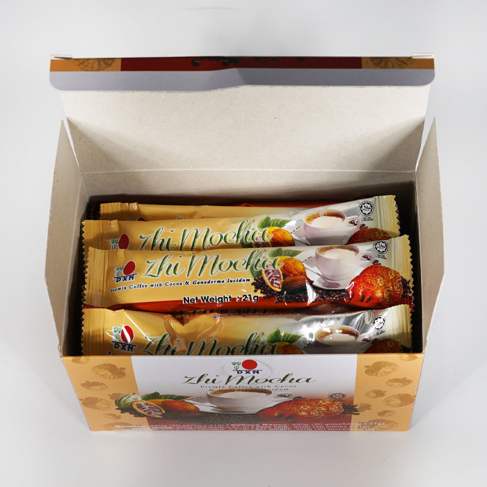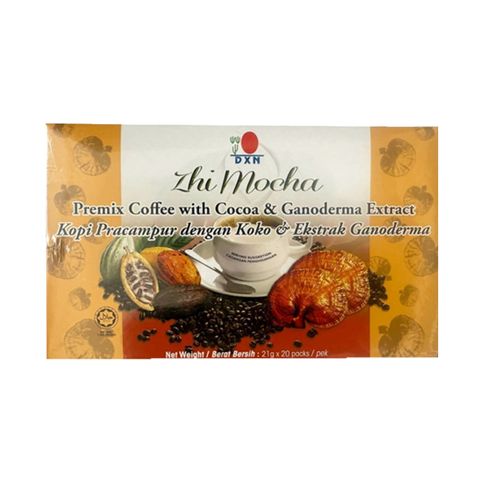 Είστε λάτρης του καφέ και αγαπάτε επίσης τη γεύση της σοκολάτας; Στη συνέχεια, DXN Zhi Mocha είναι για σας! Αναμιγνύεται με σκόνη στιγμιαίου καφέ από επιλεγμένους κόκκους καφέ, εκχύλισμα Ganoderma και σκόνη κακάο.